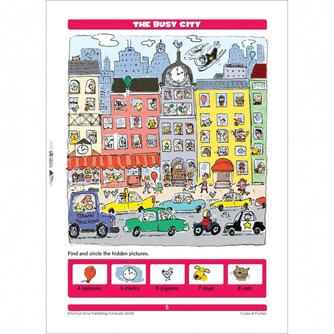 Grow little one's brains with the games and activity puzzles in this Codes and Puzzles Activity Workbook 02349 from School Zone Publications. Designed to help sharpen perception, logical reasoning, problem solving, vocabulary, and build skills such as focus, matching, spelling, and hand-eye coordination.