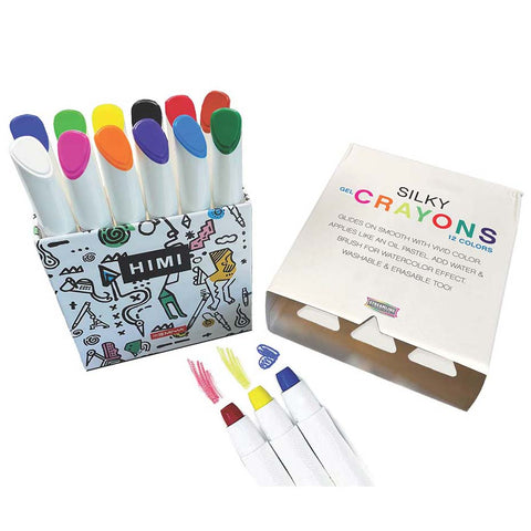 These vibrant Silky Crayons glide on so smoothly! This pack contains 12 vivid colors that apply like oil pastels. Add water and brush for a watercolor effect.